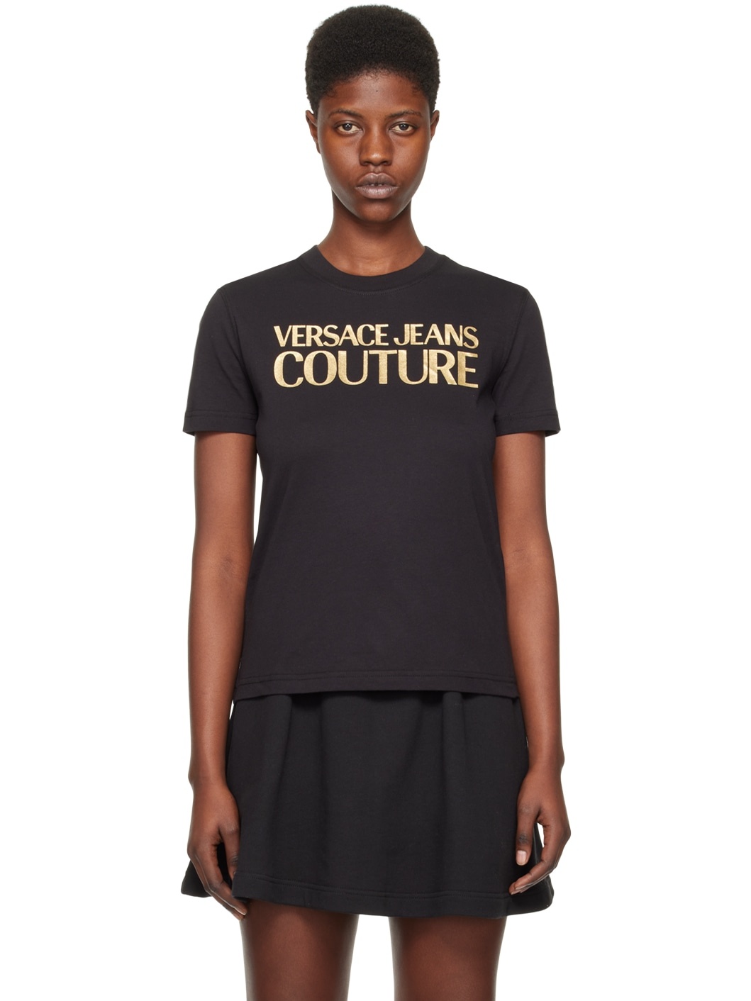 Cotton jersey T-shirt. · Rib knit crewneck · Logo bonded at front Supplier color: Black/Gold 100% cotton. Made in Turkey 241202F110001