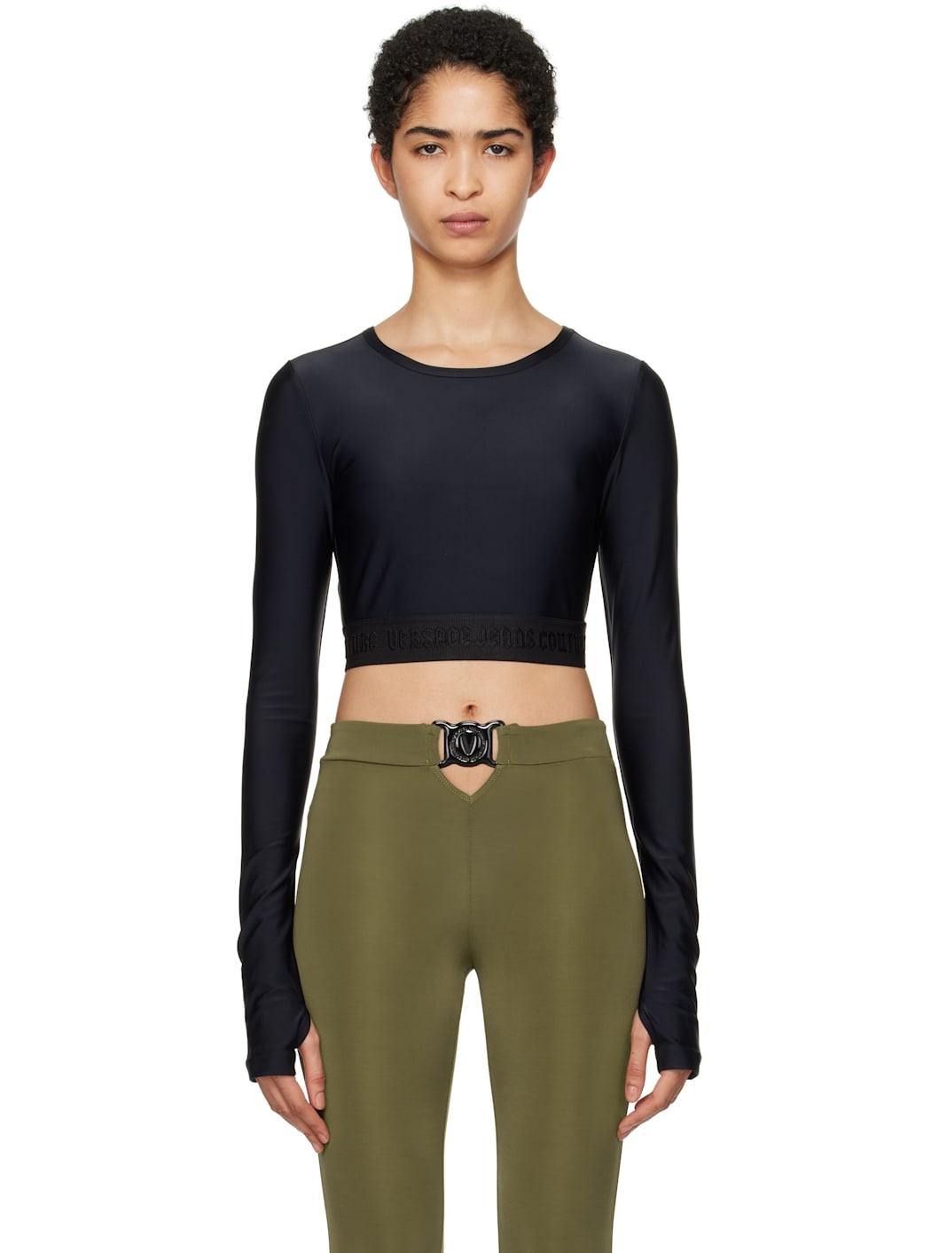 Stretch nylon jersey T-shirt. · Crewneck · Logo-woven elasticized cropped hem Supplier color: Black 80% polyamide, 20% elastane. Made in Albania 242202F110038