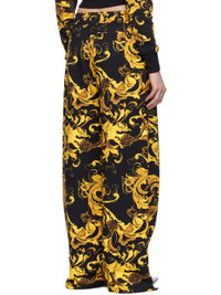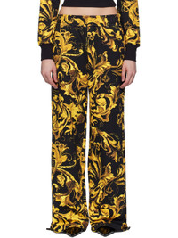 French terry lounge pants. Barocco pattern printed throughout. · Elasticized waistband · Three-pocket styling · Bungee-style drawstring at cuffs Supplier color: Black/Gold 100% cotton. Made in Turkey 252202F086003