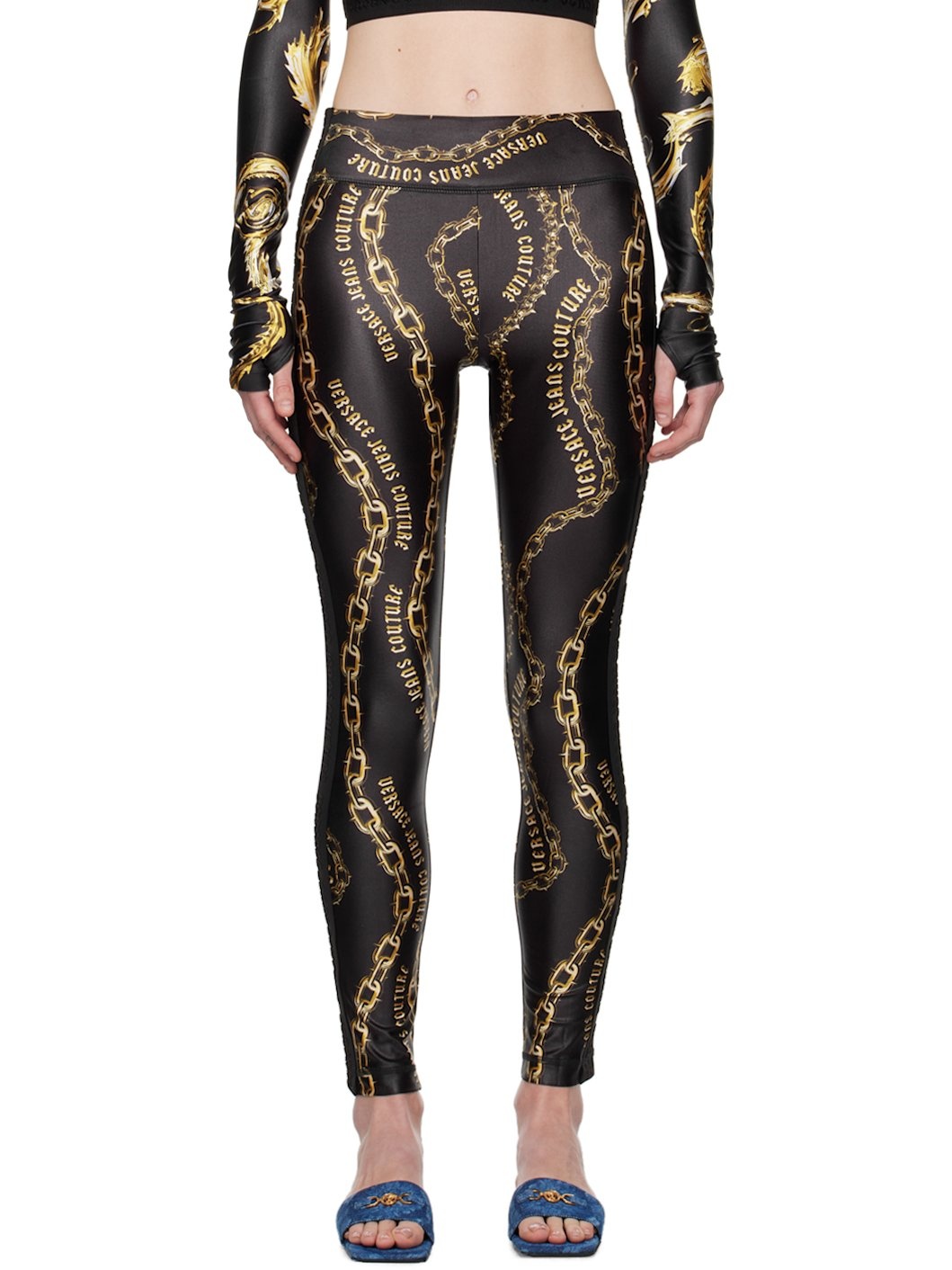 Stretch polyester jersey leggings. Graphic pattern and logos printed throughout. · Elasticized waistband · Logo-woven webbing trim at outseams Supplier color: Black/Gold 80% polyester, 20% elastane. Made in Albania 242202F085001