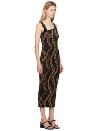 Stretch cotton jersey dress. Logo and graphic pattern printed throughout. · Asymmetric scoop neck · Adjustable pin-buckle shoulder strap · Logo-engraved antiqued gold-tone hardware Supplier color: Black/Gold 94% cotton, 6% elastane. Made in Albania 242202F054000