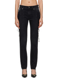 Black Lace-Up Slim-Fit Jeans