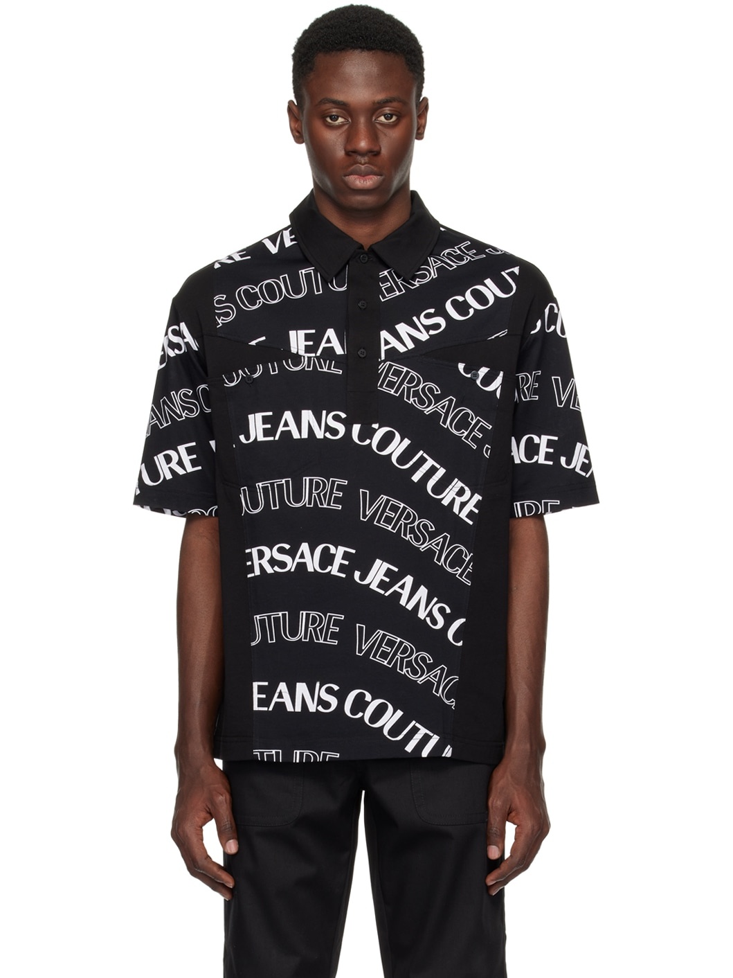 Cotton jersey polo. Logo pattern printed throughout. · Paneled construction · Spread collar · Three-button placket · Welt pockets · Yoke sleeves Supplier color: Black 100% cotton. Made in Italy 241202M212029