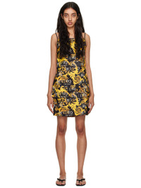 Polyester twill dress. Logo graphic pattern printed throughout. · Square neck · Vented side seams · Adjustable spaghetti shoulder straps · Full jersey lining Supplier color: Black/Gold 100% polyester. Made in Albania 231202F052029