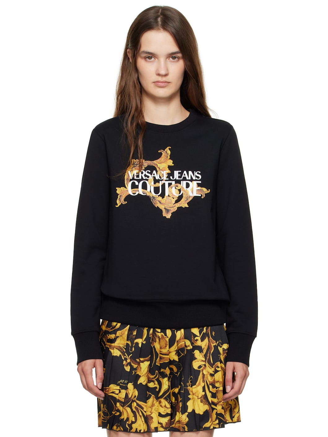 French terry sweatshirt. · Rib-knit crewneck, hem, and cuffs · Printed logo with crystal-cut accents at front Supplier color: Black/Gold 100% cotton. Made in Turkey 252202F098005