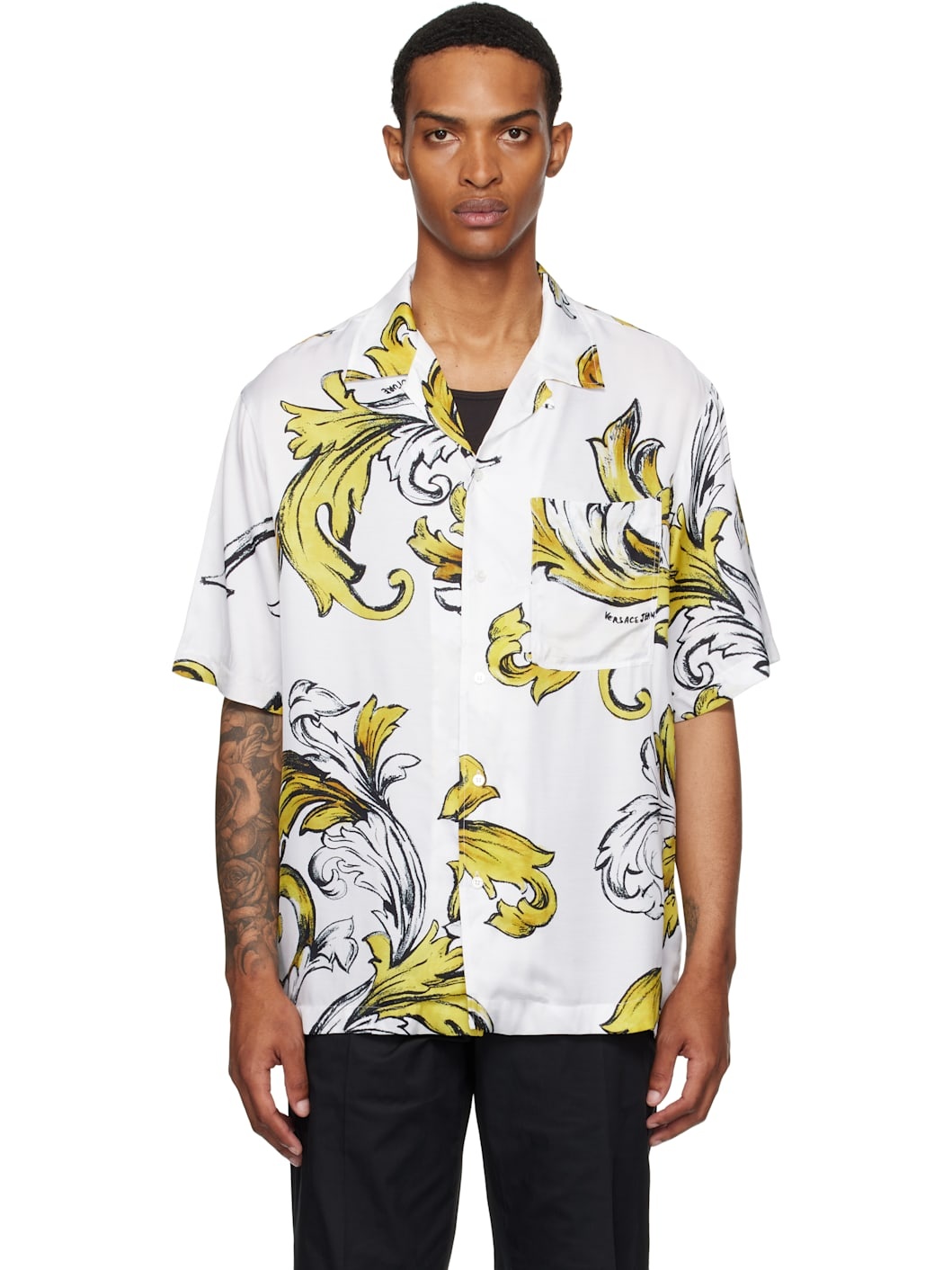 Viscose twill shirt. · Barocco pattern printed throughout · Open spread collar · Button closure · Patch pocket at chest Supplier color: White/Print 100% viscose. Made in Turkey 251202M192004