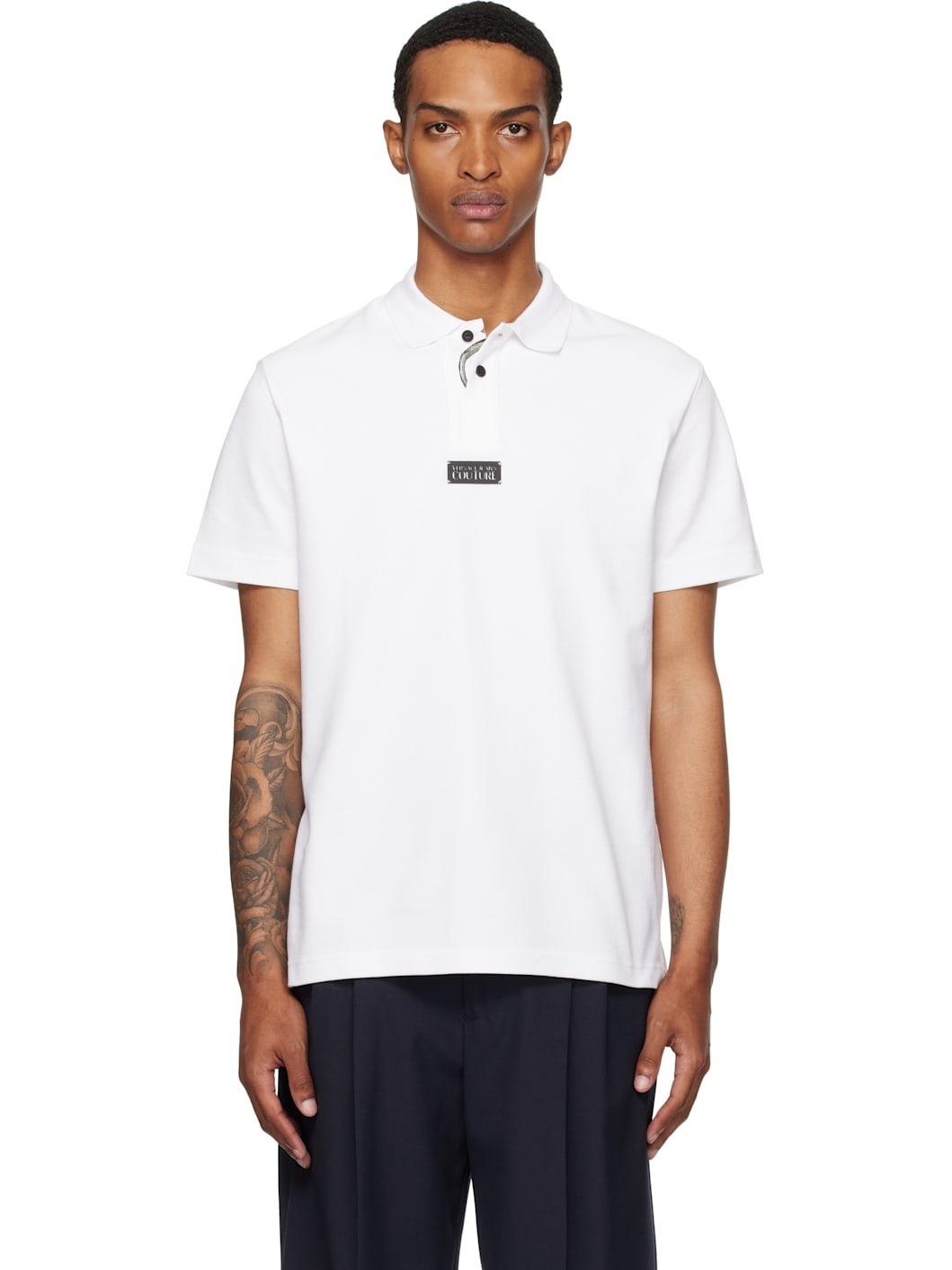 Cotton pique polo. · Rib-knit spread collar and cuffs · Three-button placket · Logo plaque at chest · Barocco pattern printed at placket and back · Tennis-tail hem Supplier color: White/Print Body: 100% cotton. Trim 1: 87% polyester, 11% polyamide, 2% elastane. Trim 2: 100% polyester. Trim 3: 100% cotton. Made in Turkey 251202M212021