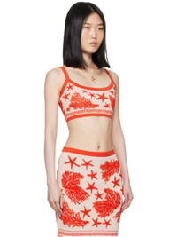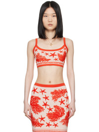 Knit stretch cotton-blend tank top. Jacquard graphic pattern throughout. · Rib knit scoop neck, hem, and armscyes · Cropped hem · Low back Supplier color: Light pink 50% cotton, 33% viscose, 9% polyamide, 7% polyester, 1% elastane. Made in Italy 242404F111004
