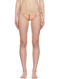 Stretch jersey bikini bottoms in pink featuring signature graphic print in tones of yellow. · Low-rise · Self-tie fastening · Fully lined Supplier color: Candy/Gold Body: 78% polyester, 22% elastane. Lining: 75% polyamide, 25% elastane. Made in Italy 221653F105009