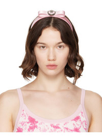 Viscose- and silk-blend satin headband. · Bow accent with Medusa hardware at face · D5" Supplier color: Pink 72% viscose, 28% silk. Made in Italy 252404F018008