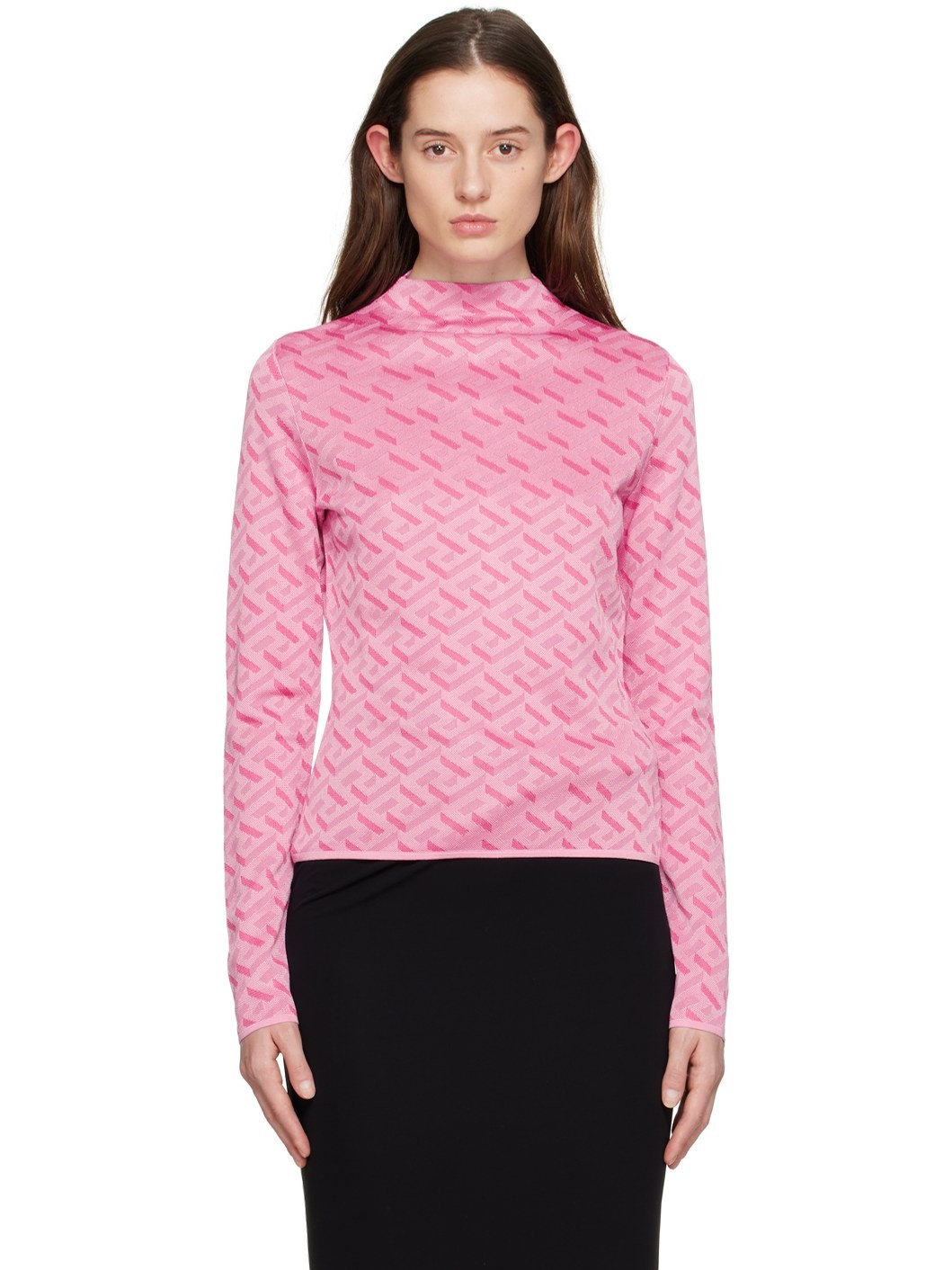 Pink 'La Greca' Long Sleeve Crewneck