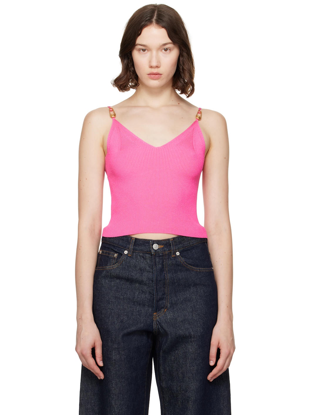 Pink Safety Pin Knit Crop Camisole