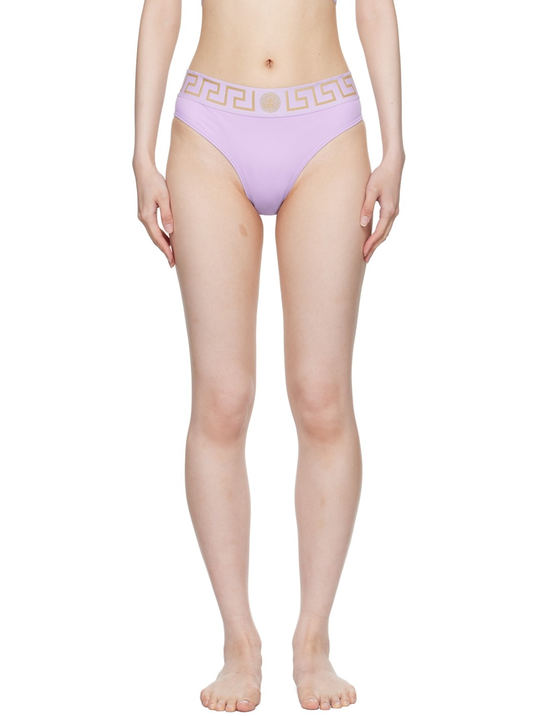 Stretch nylon jersey bikini bottom. · High-rise · Jacquard logo at elasticized waistband · Partially lined Supplier color: Mauve Body: 78% polyamide, 22% elastane. Trim: 82% polyester, 9% polyamide, 9% elastane. Lining: 78% polyamide, 22% elastane. Made in Italy 242653F105013
