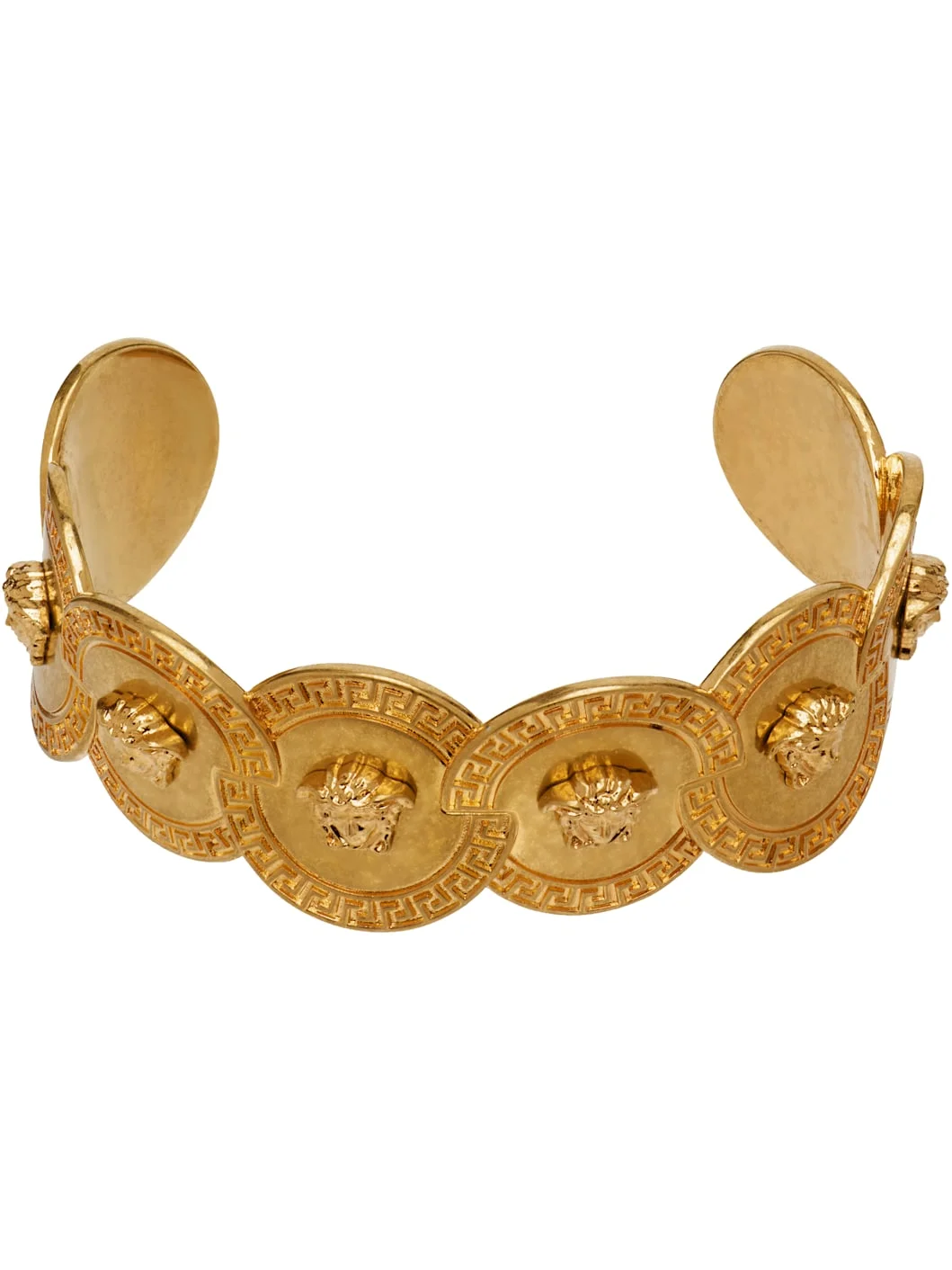 Open cuff bracelet in gold-tone brass. · Medusas and Greek key pattern throughout · Hallmarking at inner band Supplier color: Light gold Brass. Made in Italy 261404F020000