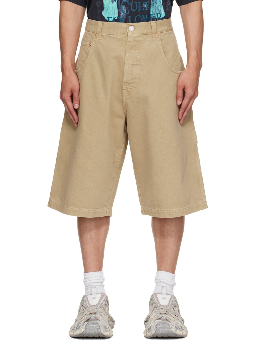Non-stretch denim shorts. · Belt loops · Five-pocket styling · Zip fly · Hammer loop at outseam · Patch pockets and embroidered logo at back leg · Logo-engraved silver- and copper-tone hardware Supplier color: Camel Body: 100% cotton. Lining: 65% polyester, 35% cotton. Made in Italy 252669M193003