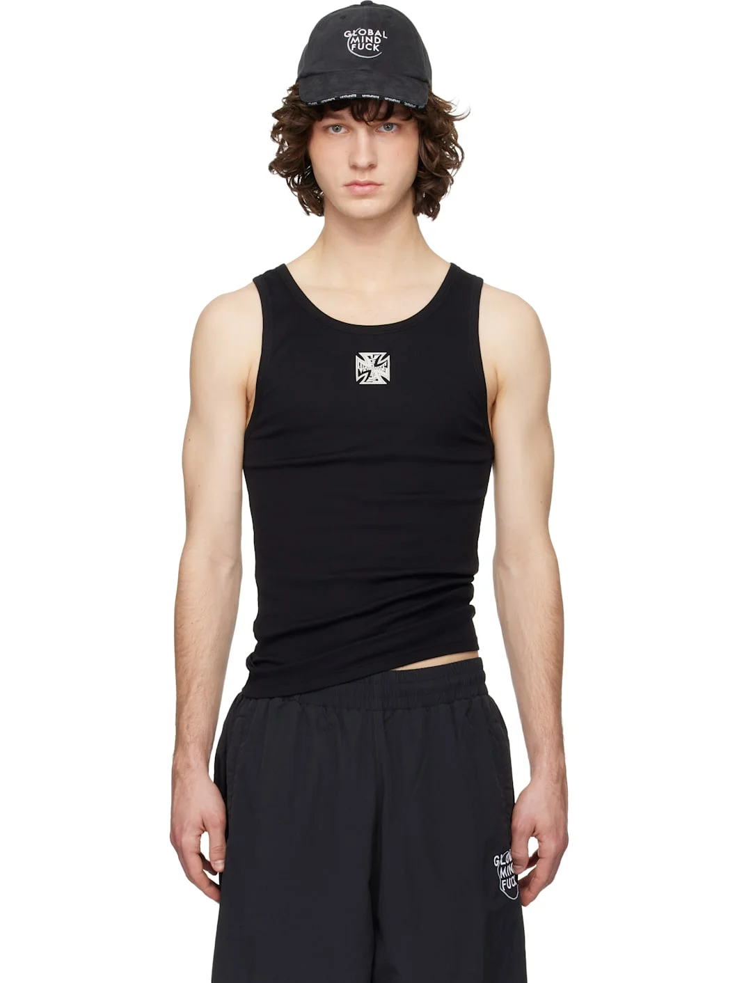 Ribbed stretch cotton jersey tank top. · Rib-knit scoop neck and armscyes · Logo graphic printed at chest · Logo embroidered at back collar Supplier color: Black Body: 97% cotton, 3% elastane. Trim: 100% cotton. Made in Portugal 261669M214007