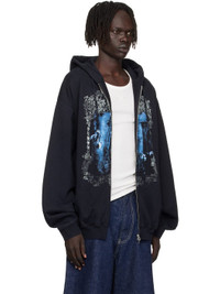 Cotton French terry hoodie. · Drawstring and embroidered logo at hood · Two-way zip closure · Text and graphic printed at front and back · Patch pockets at waist · Rib-knit hem and cuffs · Dropped shoulders Part of the Cradle of Filth capsule. Supplier color: Washed black Body: 100% cotton. Trim: 96% cotton, 4% elastane. Made in Portugal 252669M202002