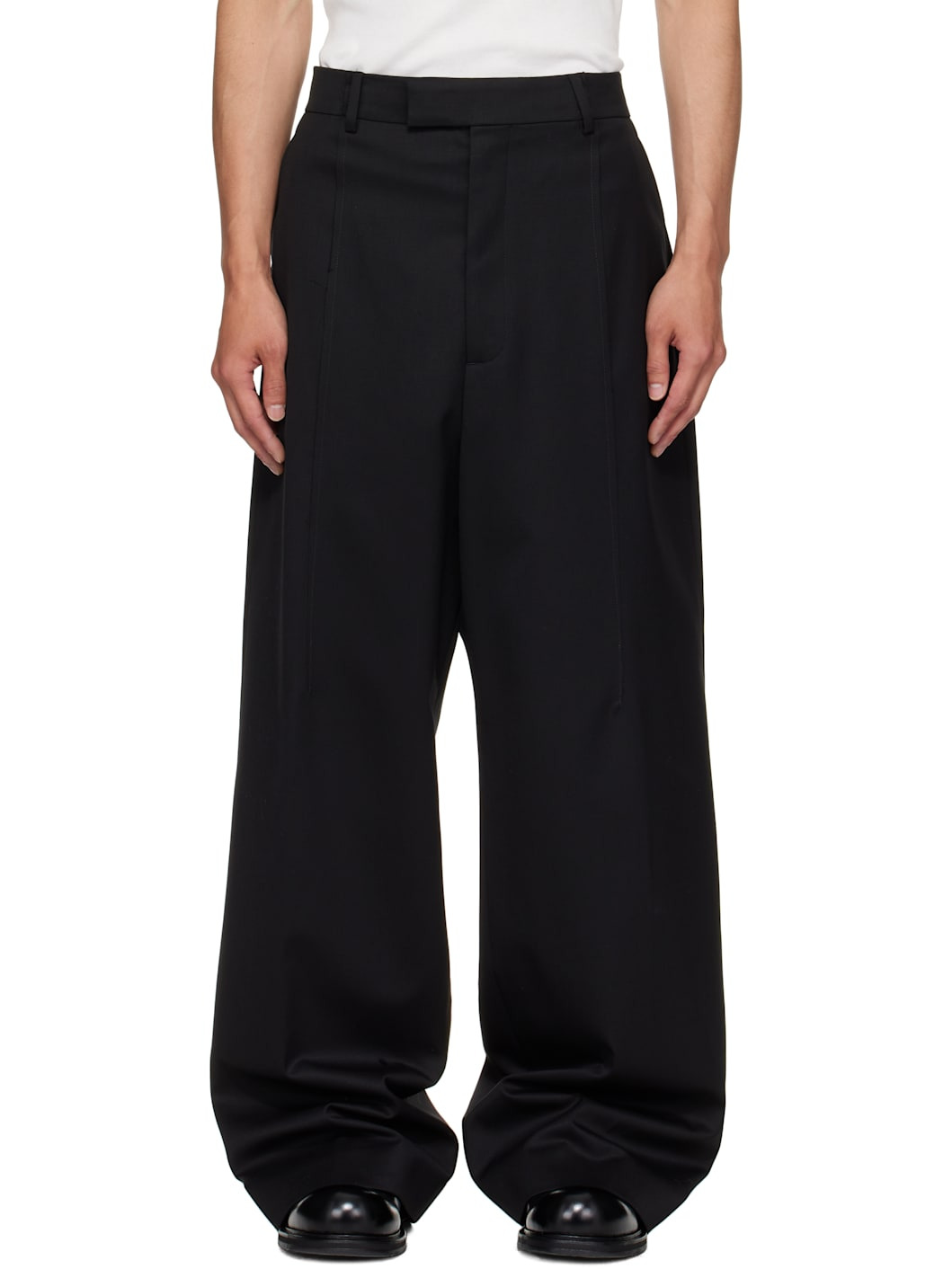Stretch virgin wool barathea trousers. · Paneled construction · Raw edges throughout · Belt loops · Four-pocket styling · Zip fly · Logo patch at back waistband · Partial satin lining Supplier color: Black Body: 98% virgin wool, 2% elastane. Lining: 100% viscose. Made in Italy 252669M191001