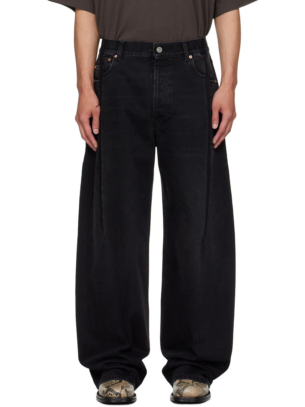 Non-stretch denim jeans. · Fading and raw edges throughout · Paneled construction · Belt loops · Five-pocket styling · Button fly · Logo patch at back waistband Supplier color: Vintage black Body: 100% cotton. Trim: 65% polyester, 35% cotton. Made in Italy 252669M186010