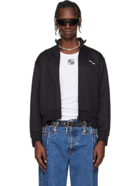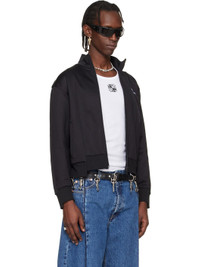 Black Cut-Up Athletic Zip-Up Track Jacket