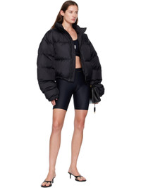 Down-filled and quilted nylon taffeta jacket. · Stand collar · Two-way zip closure · Logo embroidered at chest and back · Zip pockets at front · Bungee-style drawstring at hem · Elasticized cuffs · Full satin lining Supplier color: Blackout Fill: 80% duck feather, 20% duck down. Body: 100% polyamide. Trim: 100% polyester. Lining: 100% polyamide. Made in Italy 252669F061000