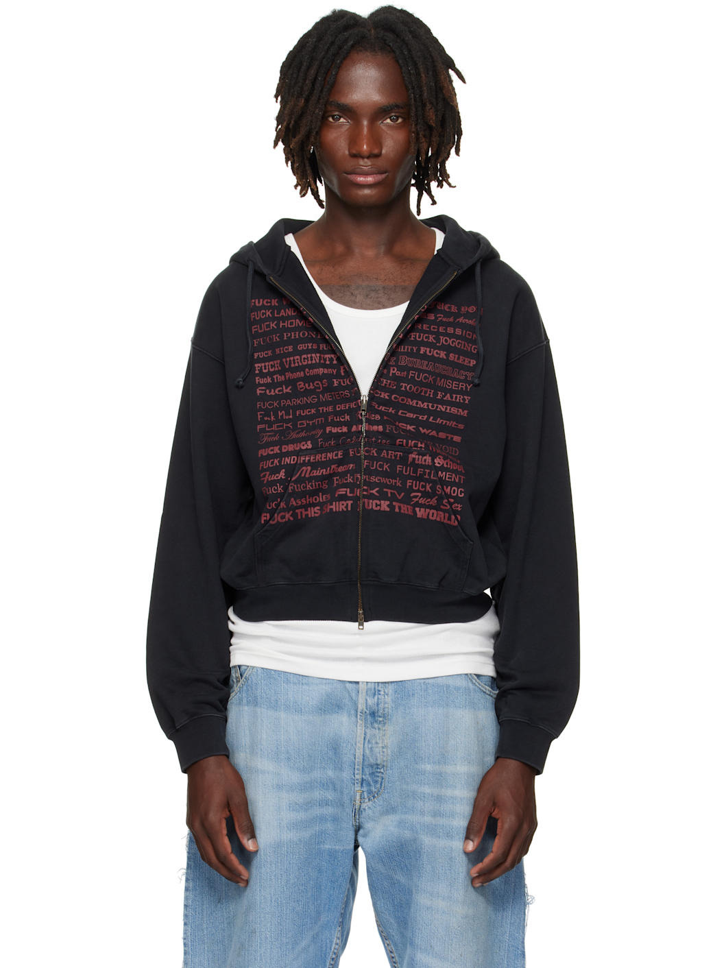 Black 'Fuck' Fitted Zip-Up Hoodie