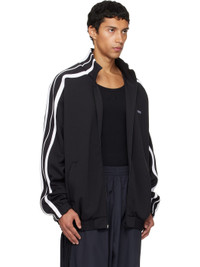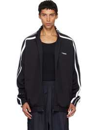 Jersey track jacket. · Stand collar · Two-way zip closure · Logo embroidered at chest and back · Zip pockets at front · Elasticized hem and cuffs · Dropped shoulders · Stripe appliques at sleeves · Full mesh lining Supplier color: Black Body: 100% polyester. Trim: 95% cotton, 5% elastane. Lining: 100% polyester. Made in Italy 252669M180005