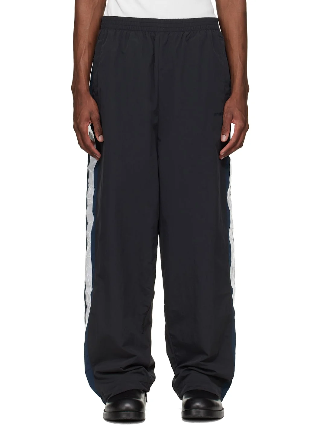 Nylon taffeta track pants. · Elasticized waistband · Three-pocket styling · Logo embroidered at front · Bungee drawstring at cuffs · Crinkled tape applique at outseams · Full mesh lining Supplier color: Black 100% nylon. Made in Italy 261669M190010