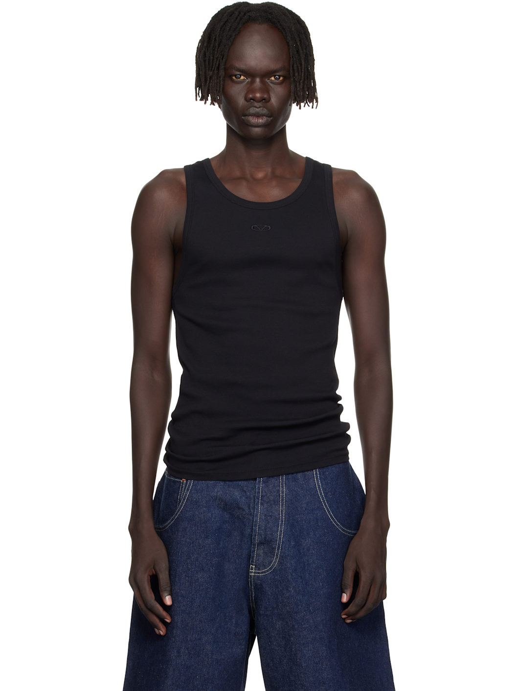 Rib-knit stretch cotton tank top. · Scoop neck · Logo embroidered at chest and back collar Supplier color: Black Body: 97% cotton, 3% elastane. Trim: 100% cotton. Made in Portugal 252669M214001