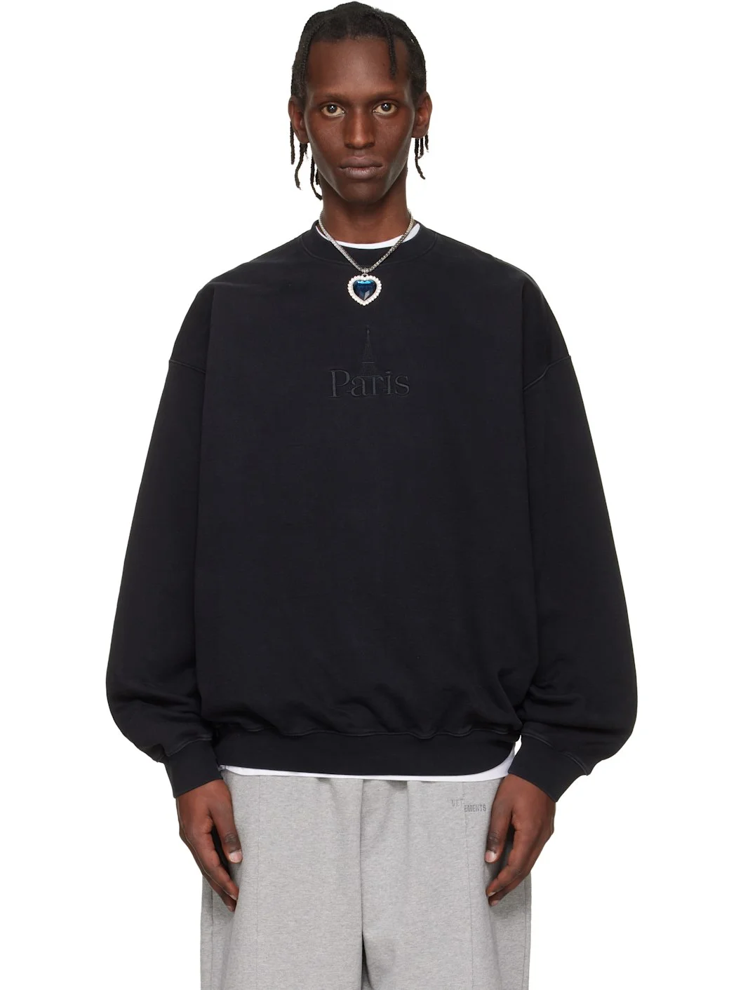 French terry sweatshirt. · Rib-knit crewneck, hem, and cuffs · Graphic and text embroidered at chest · Dropped shoulders · Logo embroidered at back collar Supplier color: Black Body: 100% cotton. Trim: 96% cotton, 4% elastane. Made in Portugal 261669M204001