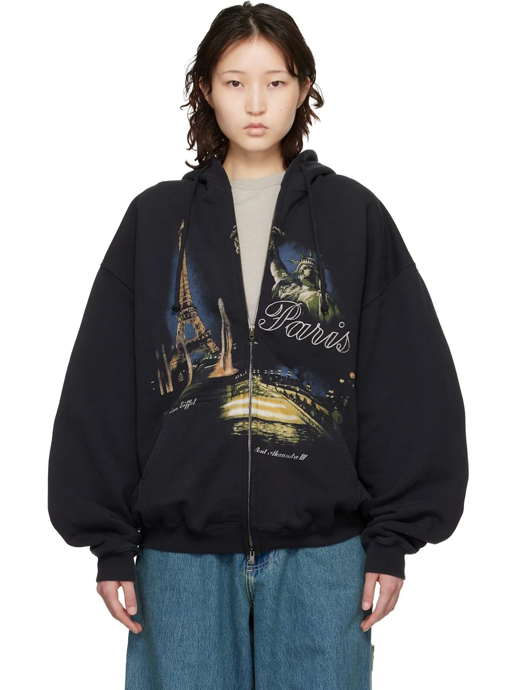 Black 'Paris' Tourist Zip Up Hoodie