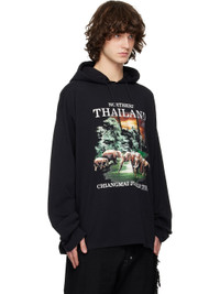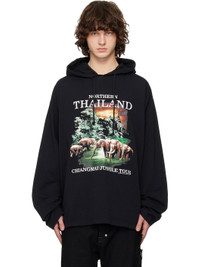 Cotton jersey hoodie. · Embroidered logo and drawstring at hood · Text and graphic printed at front · Dropped shoulders Supplier color: Black Body: 100% cotton. Trim: 94% cotton, 6% elastane. Made in Portugal 261669M202006