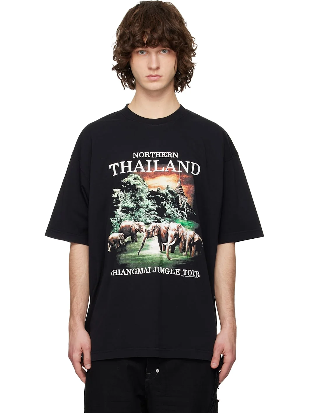 Cotton jersey T-shirt. · Rib-knit crewneck · Text and graphic printed at front · Dropped shoulders · Logo embroidered at back collar Supplier color: Black Body: 100% cotton. Trim: 97% cotton, 3% elastane. Made in Portugal 261669M213008
