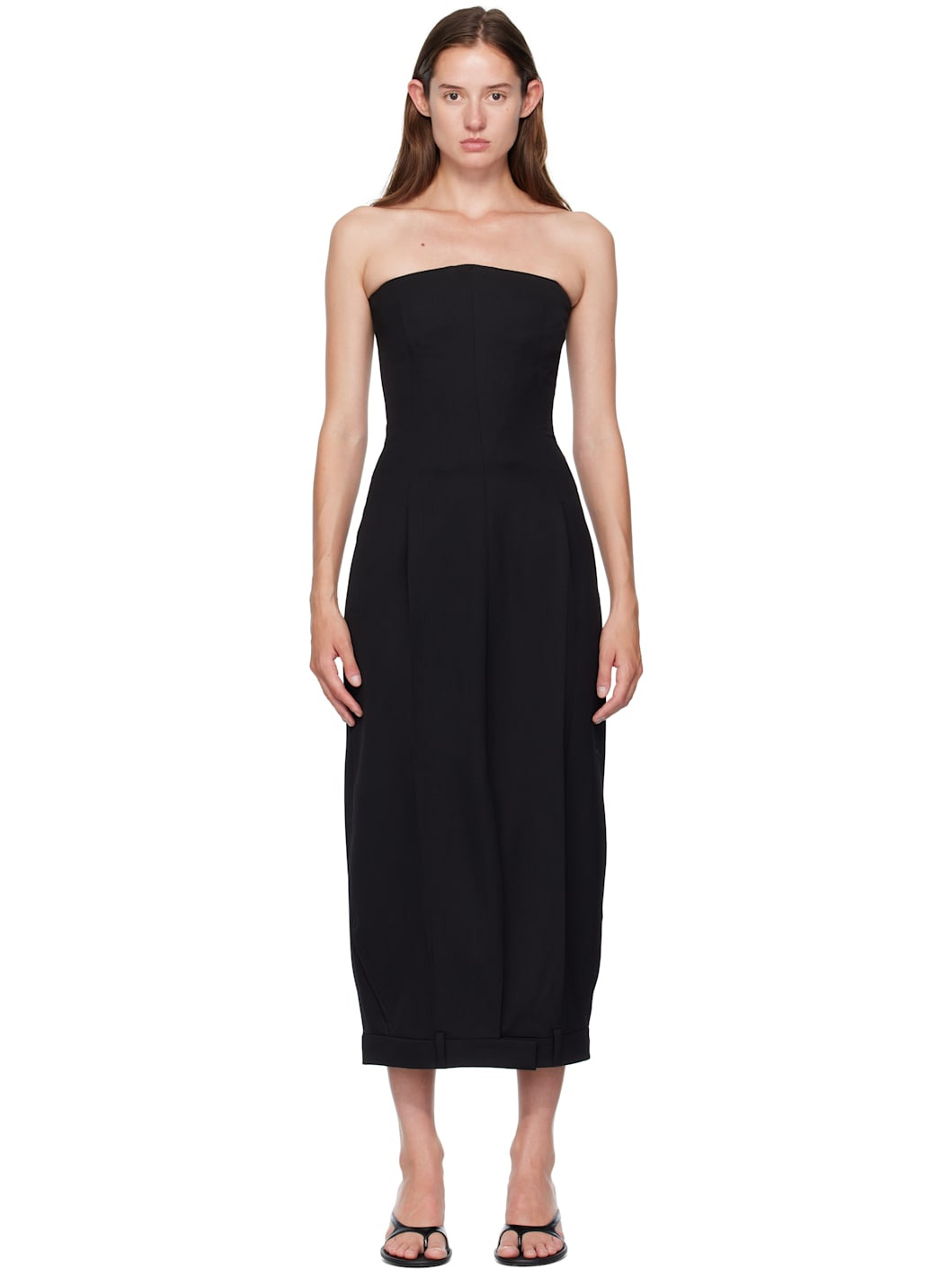 Black Upside-Down Tailored Pantadress Maxi Dress