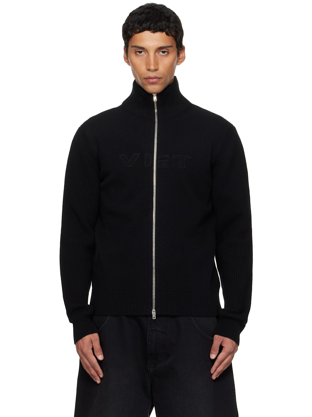 Black 'VET' Zip-Up Sweater