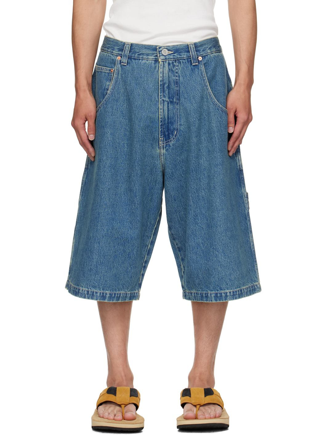 Non-stretch denim shorts. · Fading throughout · Belt loops · Five-pocket styling · Zip fly · Cargo pockets and logo patch at outseam · Hammer loop at outseam Supplier color: Vintage blue Body: 100% cotton. Trim: 65% polyester, 35% cotton. Made in Italy 252669M193001