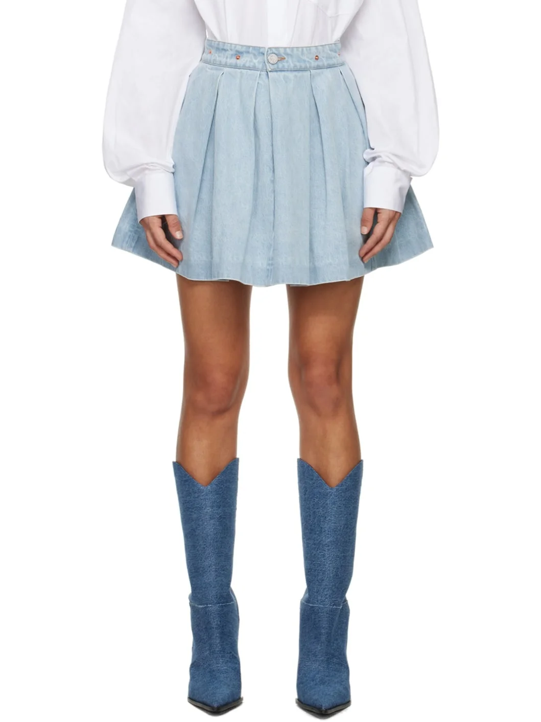 Non-stretch denim skirt. Pleats throughout. · Rivets and D-ring at waistband · Zip closure at side seam · Logo-engraved bronze-tone hardware · Contrast stitching in tan Supplier color: Blue