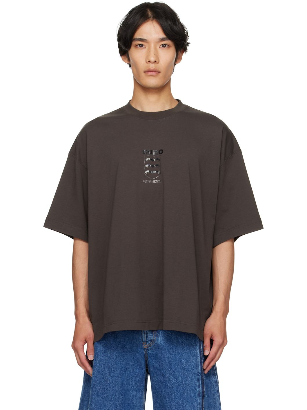 Cotton jersey T-shirt. · Rib-knit crewneck · Text, graphic, and logo printed at front · Logo embroidered at back collar Supplier color: Chocolate brown Body: 100% cotton. Trim: 97% cotton, 3% elastane. Made in Portugal 252669M213015