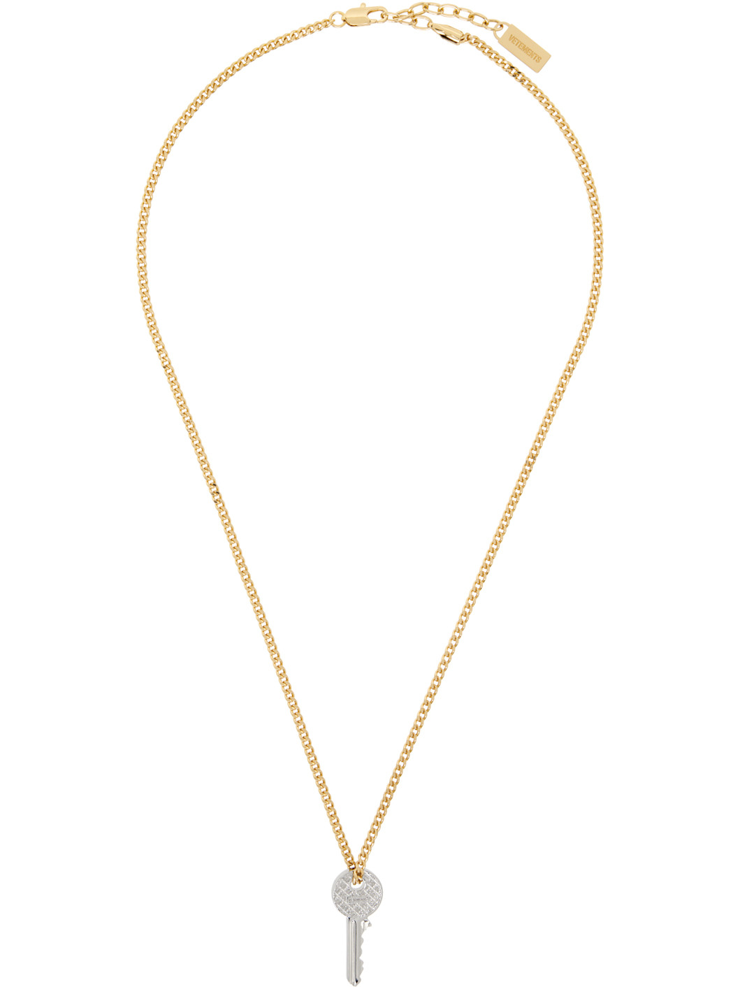 Curb chain necklace in gold-tone brass. · Key pendant in silver-tone · Logo plaque at adjustable lobster clasp · L21" Supplier color: Silver/Gold Brass. Made in Italy 252669M145002