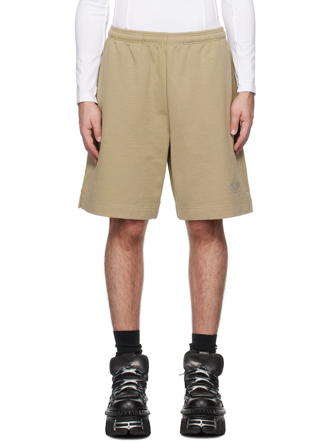 Cotton- blend French terry shorts. · Concealed drawstring at elasticized waistband · Three-pocket styling · Logo graphic printed at cuff · Vented outseams · Logo embroidered at back pocket Supplier color: Taupe 80% cotton, 20% polyester. Made in Portugal 251669M193009