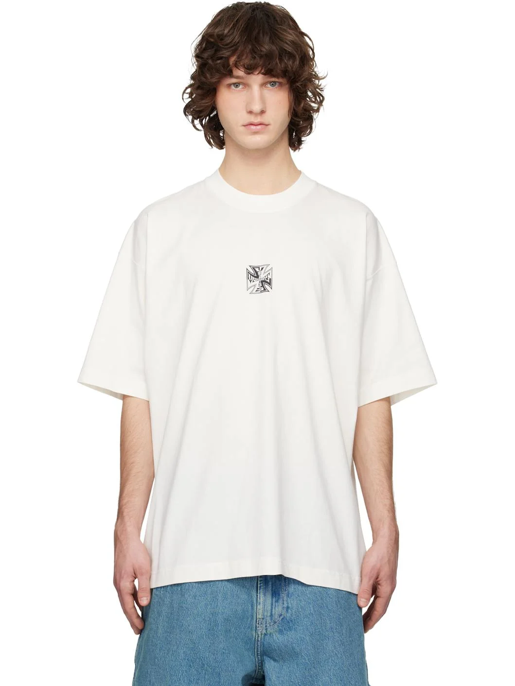 Cotton jersey T-shirt. · Rib-knit crewneck · Logo graphic printed at chest · Dropped shoulders · Logo embroidered at back collar Supplier color: Vanilla Body: 100% cotton. Trim: 97% cotton, 3% elastane. Made in Portugal 261669M213040
