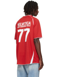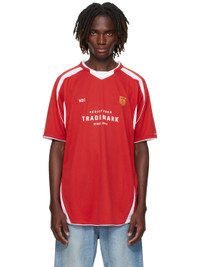 Mesh jersey. · Paneled construction · V-neck · Text printed and embroidered at front and back · Graphic embroidered at chest · Raglan sleeves · Logo embroidered at back Supplier color: Red 100% polyester. Made in Portugal 252669M213027
