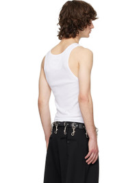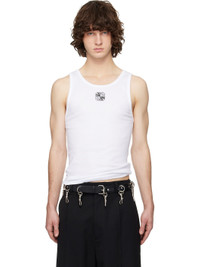 Ribbed stretch cotton jersey tank top. · Rib-knit scoop neck and armscyes · Logo graphic printed at chest · Logo embroidered at back collar Supplier color: White Body: 97% cotton, 3% elastane. Trim: 100% cotton. Made in Portugal 261669M214001