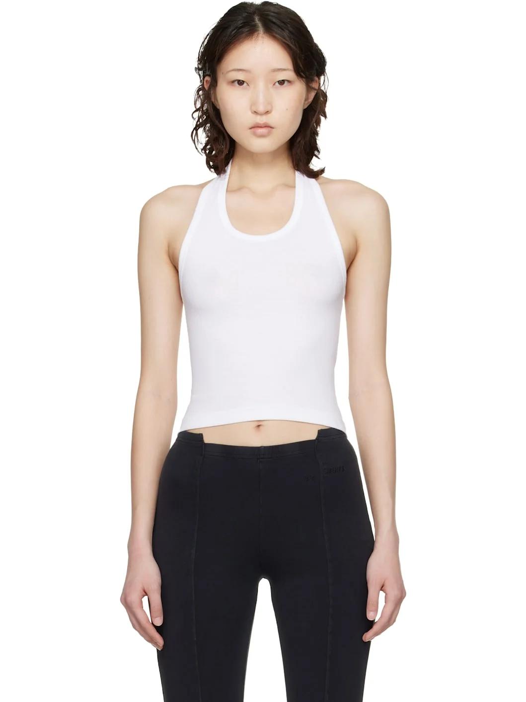 Ribbed stretch cotton jersey top. · Halter neck · Cropped hem · Logo embroidered at back Supplier color: White 97% cotton, 3% elastane. Made in Portugal 261669F111000