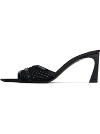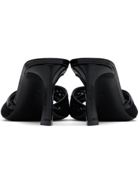Handcrafted semi-sheer mesh heeled sandals in black. Jacquard polka dot pattern and patent leather trim throughout. · Open pointed toe · Strap and logo hardware at vamp · Logo patch at padded leather footbed · Covered stiletto heel with rubber injection · Polished leather sole · Heel: H2.75" Supplier color: Black Upper: textile, leather. Sole: leather, rubber. Made in Italy 251784F125000