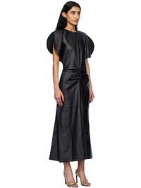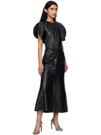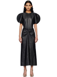 Grained nappa leather midi dress. Topstitching throughout. - Paneled construction - Round neck - Ruching at front waist - Modified cap sleeves - Concealed zip closure at back Supplier color: Black