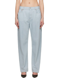 Non-stretch recycled cotton-blend denim jeans. Fading throughout. · Belt loops · Five-pocket styling · Zip fly · Logo patch at back waistband · Contrast stitching in tan Supplier color: Light azul 60% recycled cotton, 40% cotton. Made in Italy 251784F069006