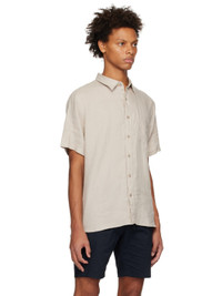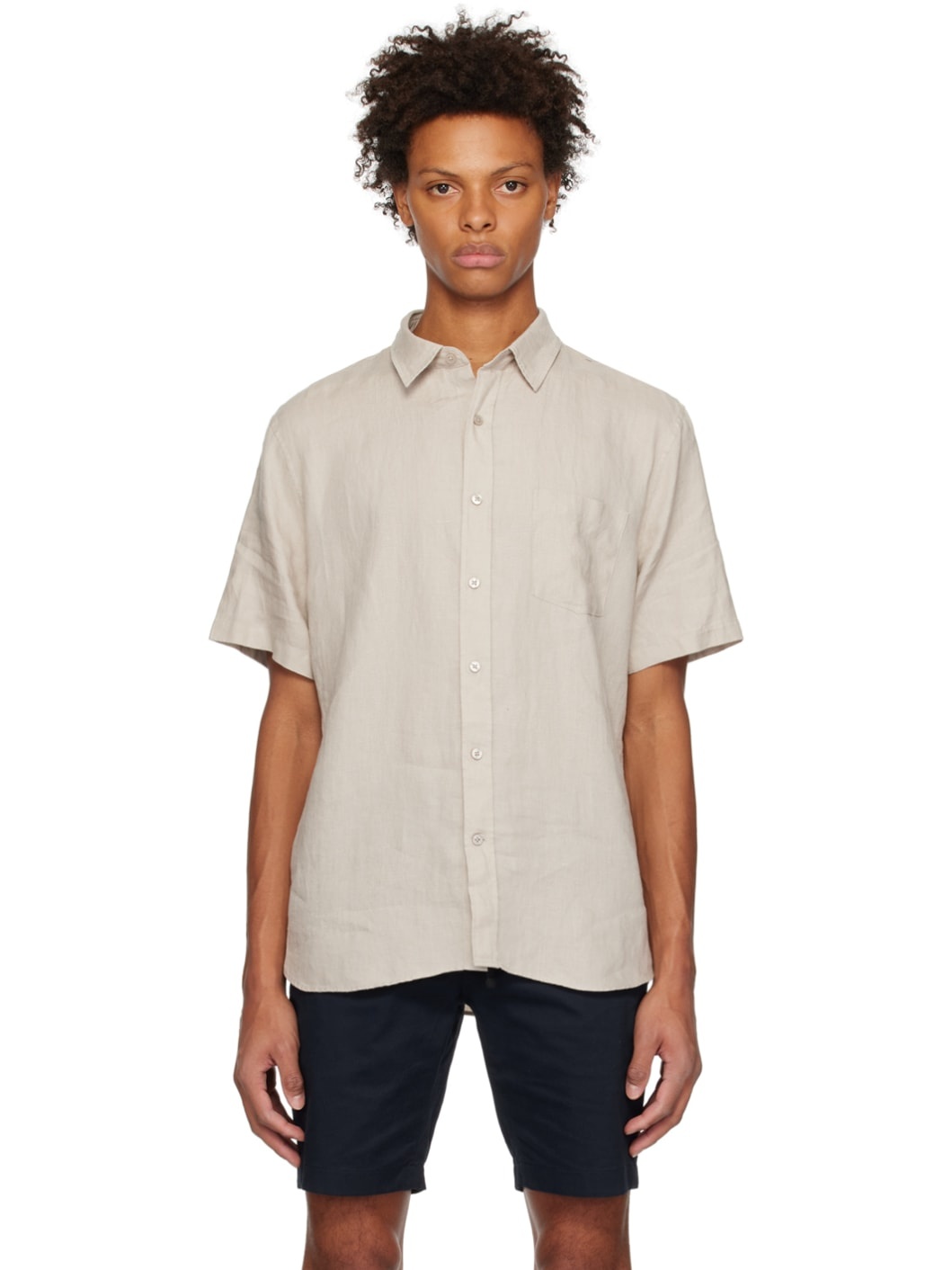 Plain-woven linen shirt. · Spread collar · Button closure · Patch pocket at chest · Shirttail hem Supplier color: Beach sand 100% linen. Made in Viet Nam 231875M192013