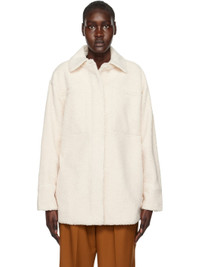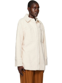 Polyester sherpa fleece jacket. · Spread collar · Concealed button closure · Welt pockets and seam pockets · Curved hem · Single-button barrel cuffs · Full faux-suede lining Supplier color: Chiffon Body: 100% polyester. Trim: 100% cotton. Made in Viet Nam 231875F063000