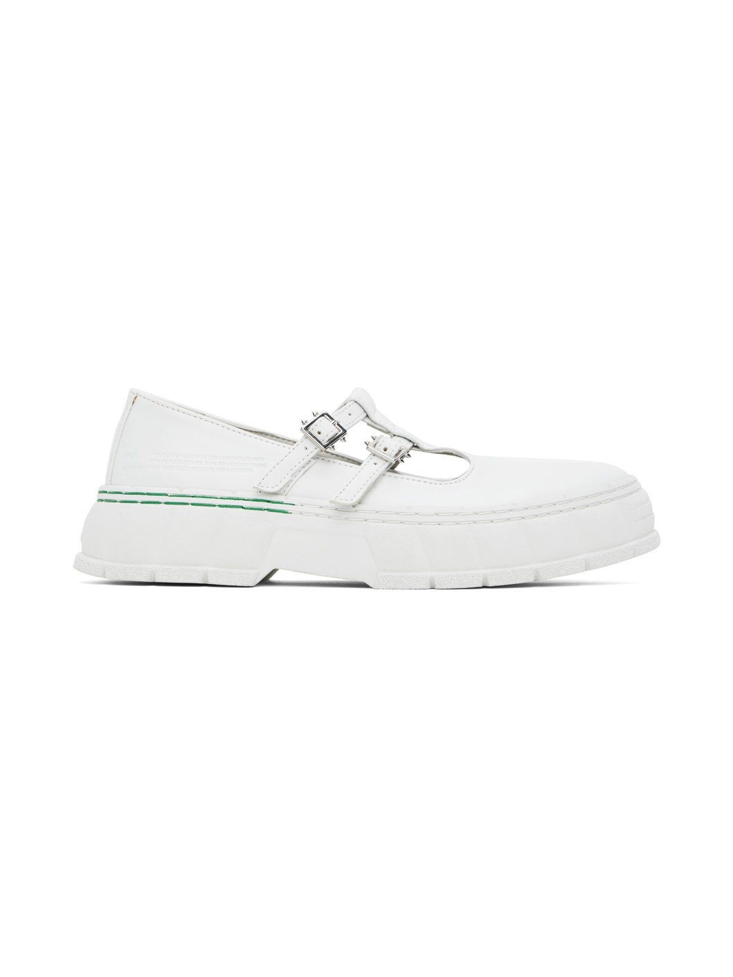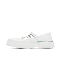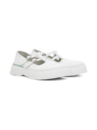 Handcrafted Appleskin™ faux-leather Mary Jane-style loafers in white. · PETA-certified · Adjustable pin-buckle straps at vamp · Text embossed at outer side · Grained faux-leather lining · Textured recycled rubber-blend sole Supplier color: White Upper: synthetic. Sole: recycled rubber, rubber. Made in Portugal 241589M231005